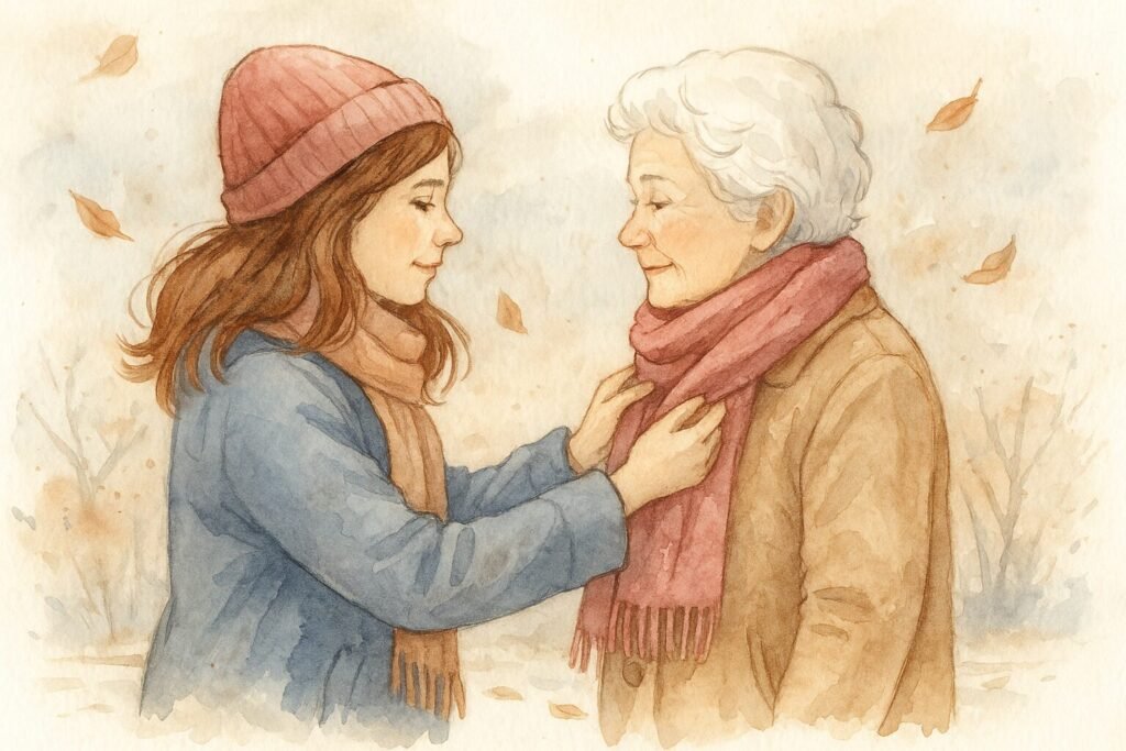 A tarde continuou fria. Mas dentro da filha, algo havia se aquecido. Não pelo vento, não pela espera — mas por esse tipo de memória que não é feita de palavras, nem de fotos. Só de gestos pequenos. Só de presença.